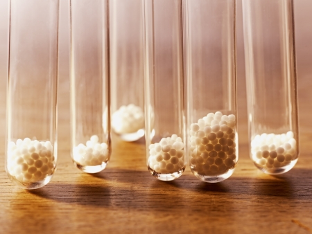 Homeo Homeopathy in small jars. Herbal extract. Selective focus.