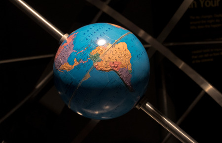 Globe on the bright blurred background, close-up photo