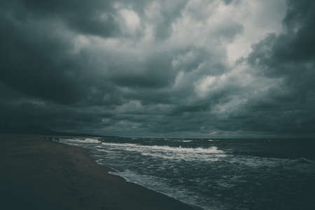 beautiful wide beach on the Baltic Sea in Poland on a summer cloudy gray cold day