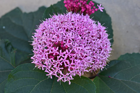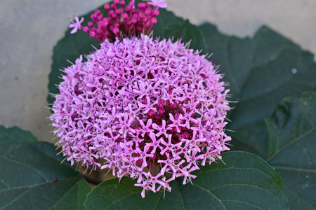 Pink flowers of clerodendrum thomsoniae bleeding glory-bower blossoming plant close up