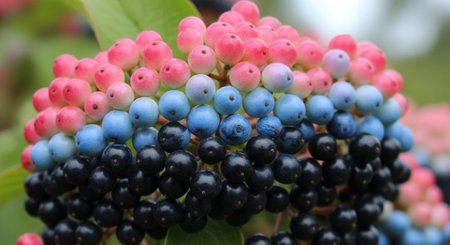 This macro photograph showcases a cluster of vibrant blue plant buds and tiny white flowers. The image exhibits a shallow depth of field, highlighting the texture and detail of the blossoms. The lighting appears soft, possibly natural, creating a serene mood. Suitable for various commercial and editorial applications.