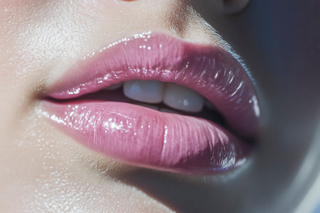 Close-Up of Glossy Lips With Natural Shine Under Soft Studio Lighting