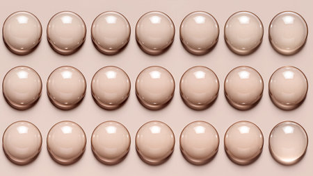 Elegant beige capsules are neatly laid out in rows, showing their smooth surfaces.