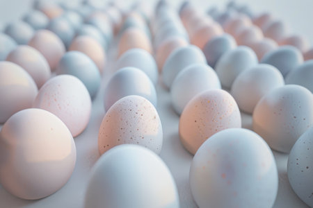 Soft pastel-colored Easter eggs arranged in neat rows, creating a calming and delicate aesthetic