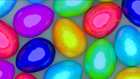 Colorful Easter Eggs chocolate flakes paint metal pattern and texture design top view background 3D illustration