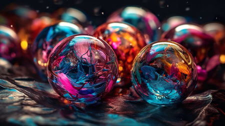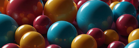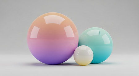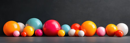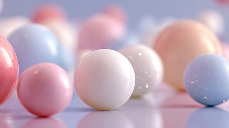 Shiny colorful spheres arranged on a pastel background. A vibrant and playful composition.