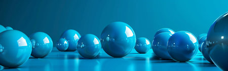 Abstract arrangement of glossy blue spheres on a reflective surface, creating a modern and futuristic visual effect.