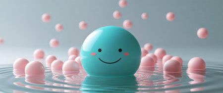 AI Generated. Happy Aqua Orb Surrounded By Pink Spheres In Water