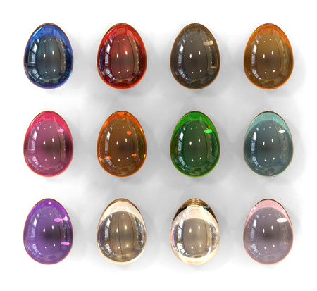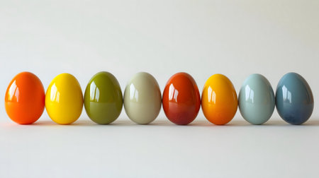 A row of eight glossy pastel eggs in various spring colors. Perfect for Easter decorations