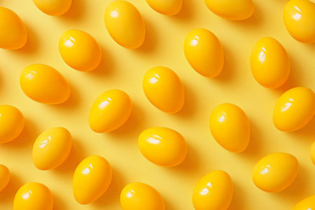 Pattern of yellow eggs on bright yellow background creating a vibrant and cheerful composition