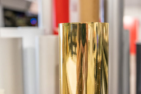 Golden obsession. Professional printing facility, big vinyl rolls, ready for large printer suplly. Glossy, matte, ecological materials, mostly used for commercial billboards, urban advertising, and oversized projects.