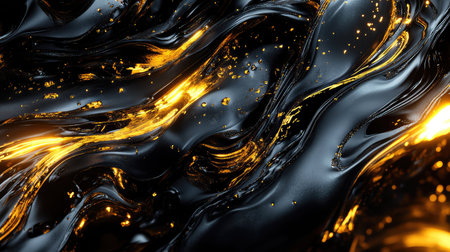 A glossy black substance forms gentle, fluid waves, creating a sleek, luxurious texture ideal for design, advertising, or artistic backgrounds.
