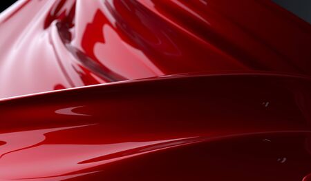 Abstract liquid red paint background. 3D rendering of abstract twisted shape of paint. Geometric digital art. Squeezed liquid shape. Red twisted viscous substance. Cover or poster design template