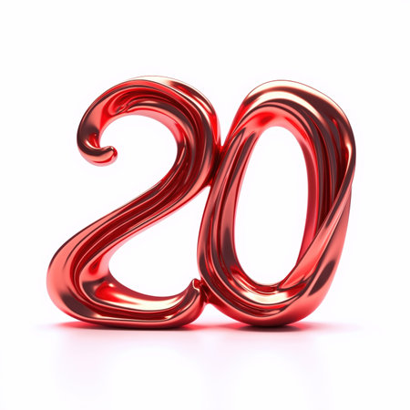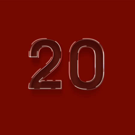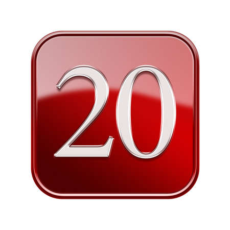 Beautiful, shiny red number 20 on a white background, illustration for a birthday card, with a subtle shadow effect.