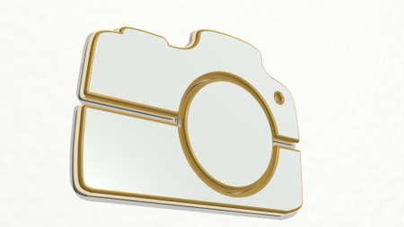 DSLR CAMERA from a perspective on the wall. A thick sculpture made of metallic materials of 3D rendering. digital and background
