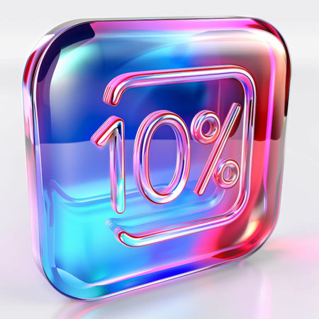 A shiny square button bearing a percentage sign symbol, exuding a sense of value and measurement.