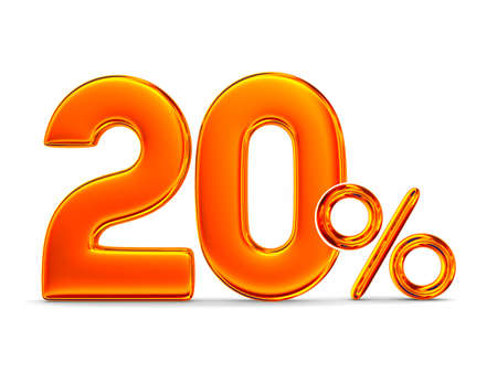 20 Percent Off Sale. 20% percent of. Special offer discount. gold number 20% 3d rendering. sign for marketing, sales, discounts, promotions, financial, business, banner. 3d Golden number