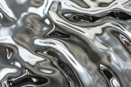 Shiny metallic waves in liquid chrome, reflecting light with a captivating sheen, perfect for futuristic designs.