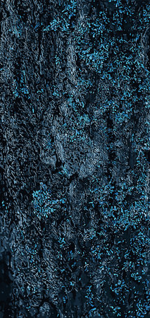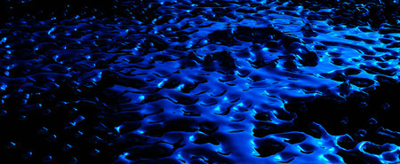 Abstract blue mysterious background. Rough texture in dark light. Oily, oily ooze with bubbles and lumps. Dark uneven background with reflected blue light. 3d illustration with gestural texture.
