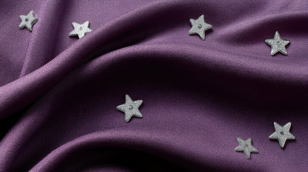 A beautiful arrangement of elegant purple fabric adorned with silver stars, creating a dreamy and magical atmosphere perfect for various creative projects and celebrations.