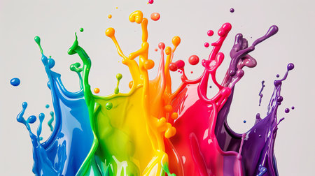 Captivating image showcasing vivid splashes of paint in motion. The dynamic display of colors creates a lively and visually striking moment frozen in time.