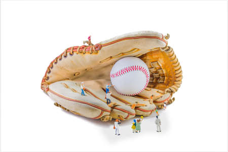 image of mini figure kid dolls with base ball glove and ball