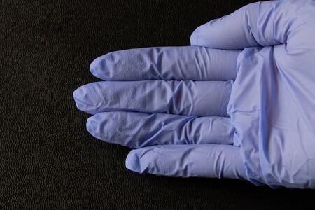 hand in medical gloves on black background