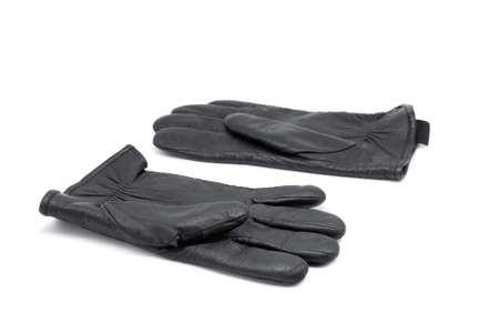 Leather black gloves. Close-up. Isolated over white background.