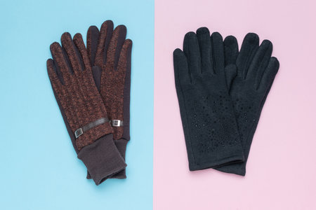 Stylish Winter Gloves in Blue and Pink Contrast Backgrounds