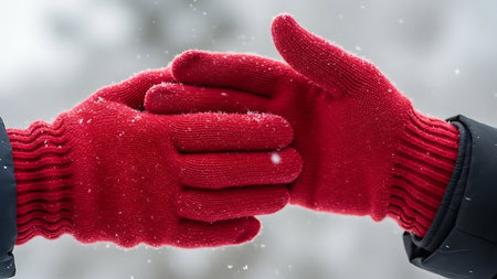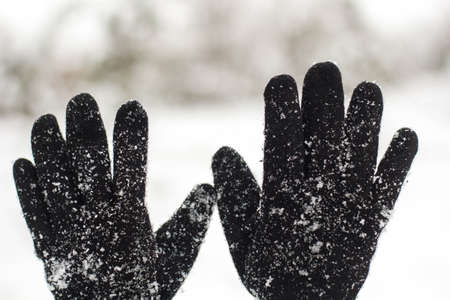 Women's gloves in snowy weather close up.
