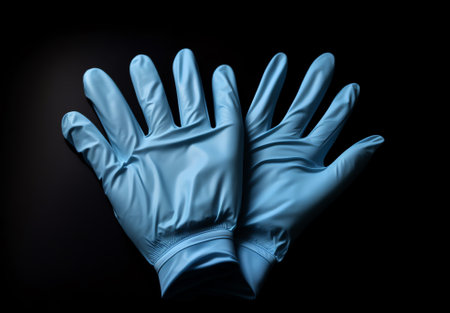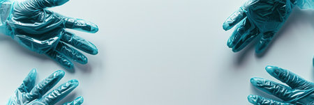 Close up of medical gloves on blue background