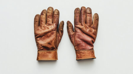 Minimalist white background with a pair of leather gloves, neatly placed side by side