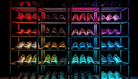 Modern fashion store showcases sports shoe collection generated by artificial intelligence
