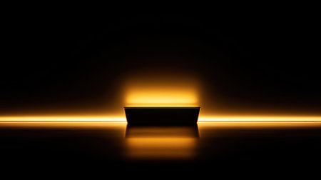 This minimalistic image features a glowing box on a reflective surface, set against a dark background that creates a warm, inviting ambiance.