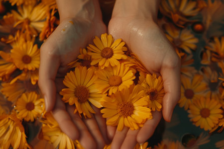 Blooming Beauty: Captivating Golden Black-Eyed Susan Blossoms Embraced by Hands
