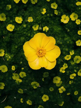 A captivating scene of vibrant golden flowers basking in the sunlight, illustrating the beauty of nature's palette. This serene meadow invites calmness and joy.