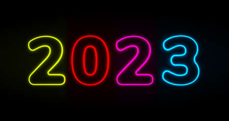 2023 neon sign on a dark background. 3d rendering.