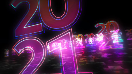 2021 year new digital design concept. Futuristic abstract 3d rendering illustration. Cyber space style.
