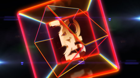3d illustration of numbers 2022 in cyberpunk style with neon lights standing on the ground