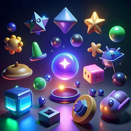 A vibrant collection of 3D icons. rendered in a glossy style and illuminated with dramatic lighting. Perfect for presentations. websites. and branding projects.