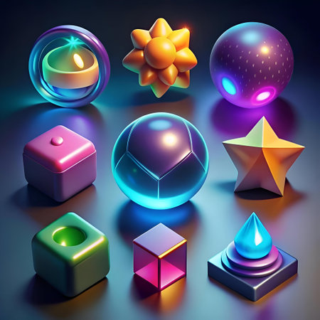 A vibrant collection of 3D geometric icons. perfect for adding a playful and modern touch to your designs. These colorful and shiny icons are ideal for web design. UI elements. presentations. and more.