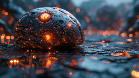 3d illustration of a digital glowing brain in a dark space. 3d rendering.