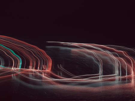 Colorful light traces with long exposure in the dark. abstract blurred lights background