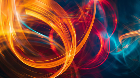 Capture the essence of motion with vibrant abstract light trails. This dynamic image features swirling colors and glowing lines that convey energy and creativity. Perfect for modern design projects.