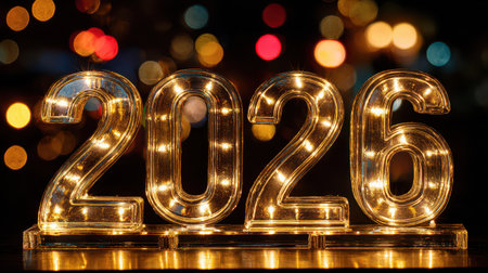 A sparkling representation of the year 2026, adorned with shimmering lights and glitter, perfect for New Year celebrations and festive events, creating a joyful ambiance.
