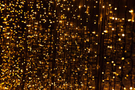 Beautiful natural bokeh of the yellow lights. Abstract Christmas New Year backdrop for text or advertising. Template for banner or party invitation