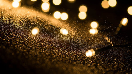 Background texture glitter. Abstract gold Festive lights. Blur Bokeh glamor.