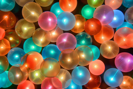 A captivating scene of colorful floating lights against a dark background. This image captures the vibrant and festive essence, perfect for party themes and decoration.