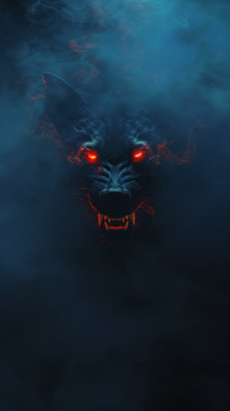 Angry wolf with glowing eyes in red light. scary illustration