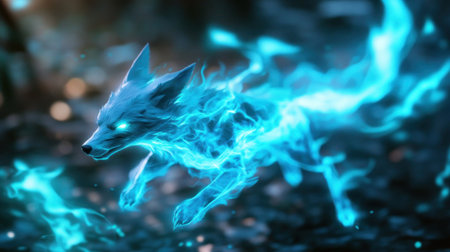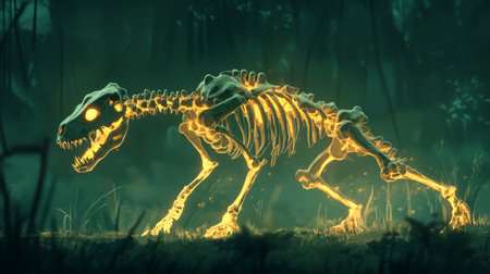 Glowing skeleton of a wild canine prowling in a mysterious forest